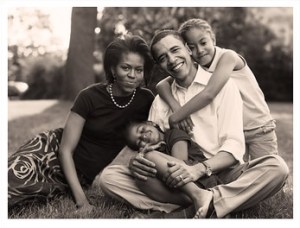 The Perfect Grandson, sleeping in his crib two rooms away right now, doesn’t know that this picture of Barack Obama and his family will someday be in his high school history book. But it will.