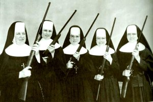 Wow. We humans are just buggy, aren’t we? I just hate hate and fear fear, if you know what I mean. Having been raised Catholic and gone to Catholic school, that photo of the nuns is funny and not funny at the same time. Oh, and did you mean for that Google ad for firearms training to be on the right sidebar as an ironic statement or was that placement next to this post an accident?