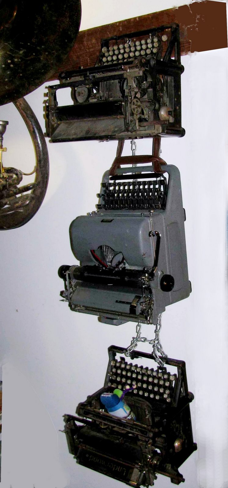 So now I’m thinking hard about the seven or eight typewriters cozied under my bed, nesting in their cases like off-season tulip plantings. Clearly, I need a storage solution less on the hide-it-under-the-bed side and more along the lines of oooh aaaah art.