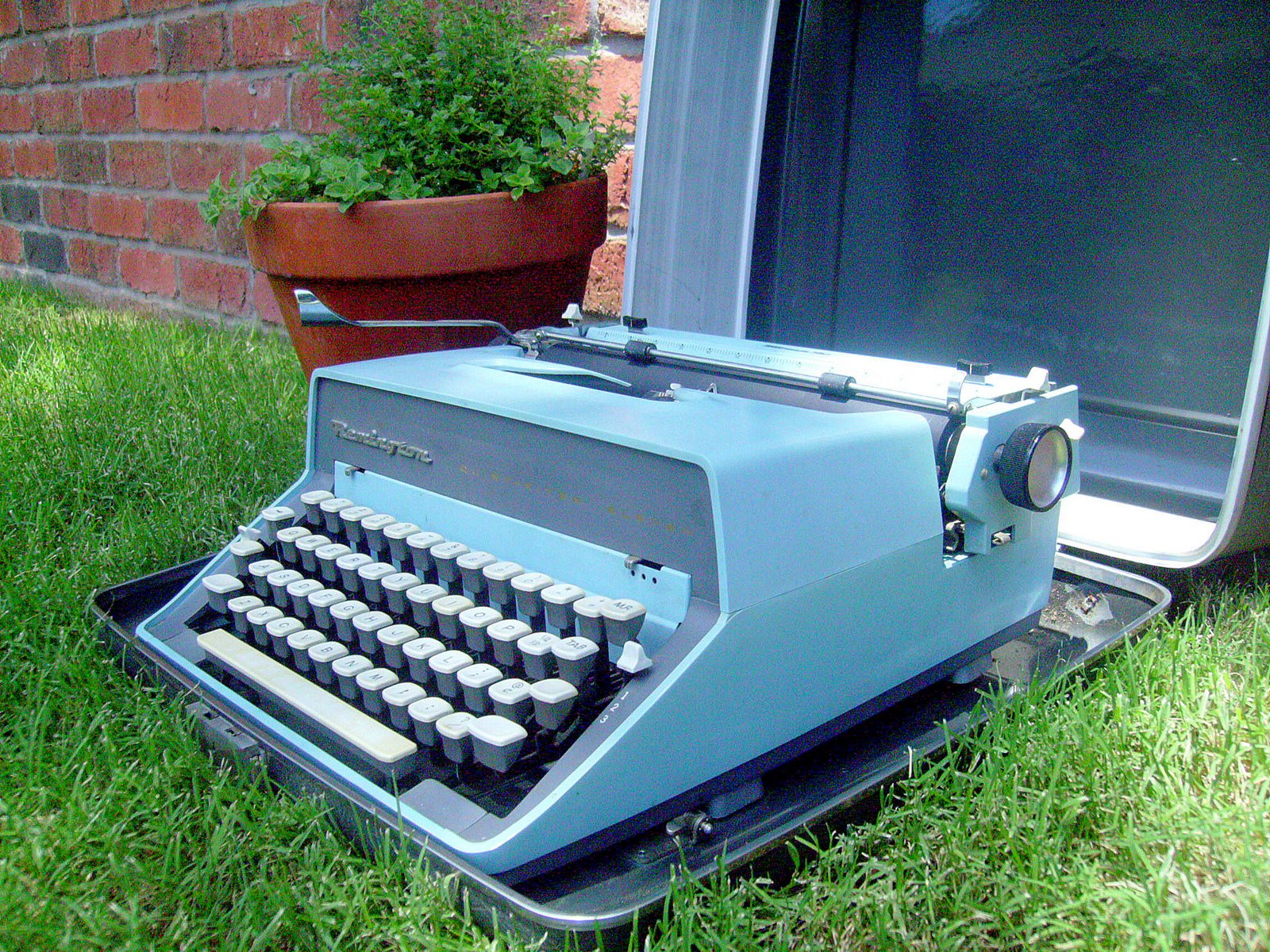That unused, baby blue Remington Quiet-Riter 11 pictured above set me back $10 and I didn’t haggle a bit. It came with a pristine roller and two unopened boxes of ribbon. It was like the typewriter had been in a time capsule until I walked in and opened the case. It’s a tad big and a bit heavy, but Lord that snappy key action. Yes indeed.