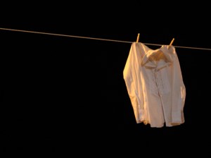 Mama’s tired of waiting so she heaves the lawn-and-leaf bag on the counter and dumps it out fast. A small mountain of dusty baby clothes, and from the middle an unopened can of powdered baby formula falls out and rolls against the daughter’s foot. When the girl and her black eye bend down to get it, she pulls the stolen baby toy out of her pocket and places both on top of the clothes. Here, mama. These fell out.