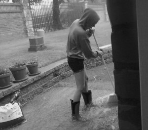 This afternoon the lie became the truth and in less than half an hour Em was outside sweeping water furiously away from the back door.