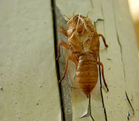 In late August I always had a fine collection of locust shells carefully picked from tree bark, screened doors, and other scratchy, irregular places. These were particularly prone to crushing in, say, the back pocket of your jeans, so a sturdy cigar box was essential. My neighborhood friends and I would travel in rangy packs like out-of-season Easter egg hunters, some of us with empty mayonnaise jars but most of us with cigar boxes. We could kill entire afternoons looking for locust shells and sticking their hooked little empty feet to our clothes and hair. After scaring my mother with them at dinner, they were always carefully placed back in the King Edwards box and spent the night under my bed.