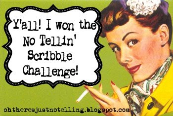 This week’s winner will, of course, earn the right to sport the No Tellin‘ Scribble Challenge badge on their blog. So enter often and don’t be too disgusting. The challenge ends Friday night, and I’ll announce the winner on Saturday.